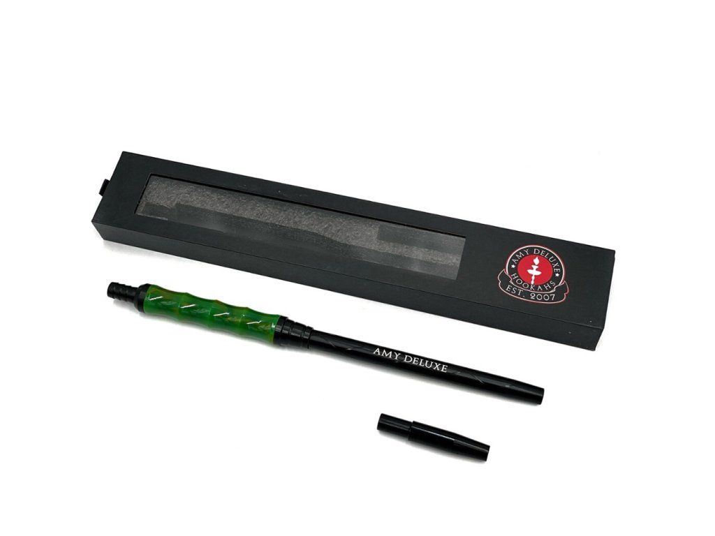 Amy Deluxe Green/Black je náustek pro vodní dýmku, který cílí na dvě věci: komfort při kouření a vyladěný vzhled hadice. Díky prodlouženému provedení se náustek drží stabilně, lépe se ovládá a během seance působí přirozeněji v ruce – hlavně když u dýmky sedí více lidí a náustek často mění majitele.