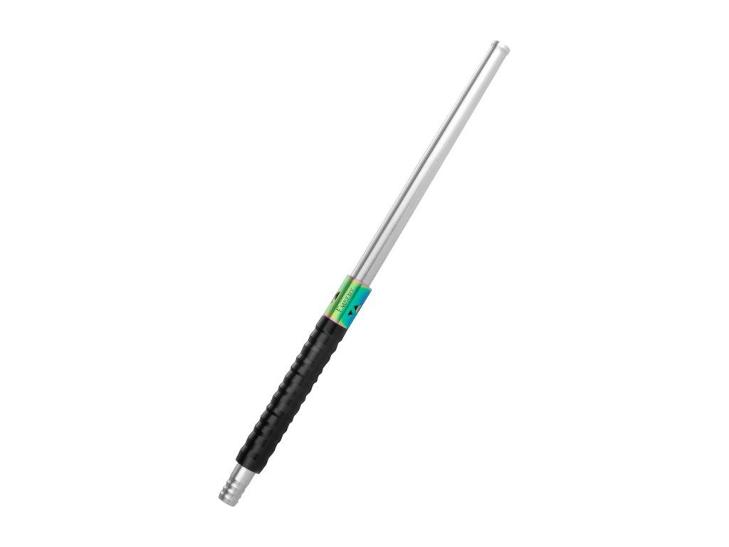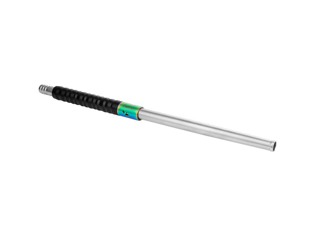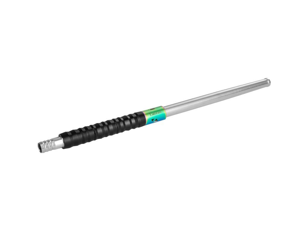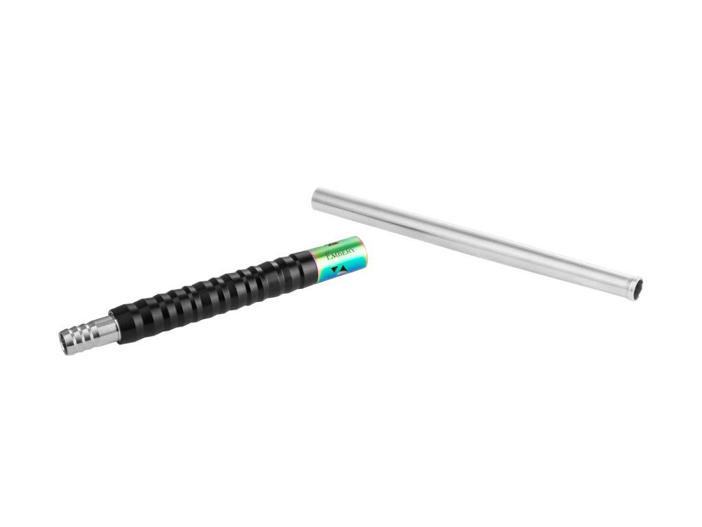 Jádro náustku je z nerezové oceli a doplněné o POM (potravinářský plast) v podobě strukturovaného gripu. Prakticky to znamená jistější držení (neklouže), pohodlnější manipulaci při delší session a zároveň jednoduché čištění. Délka 33,5 cm dává přirozený posed při kouření a náustek působí vyváženě – není „lehounký“, ale ani zbytečně těžký. Hmotnost 185 g je tak akorát pro pevný, stabilní pocit v ruce.