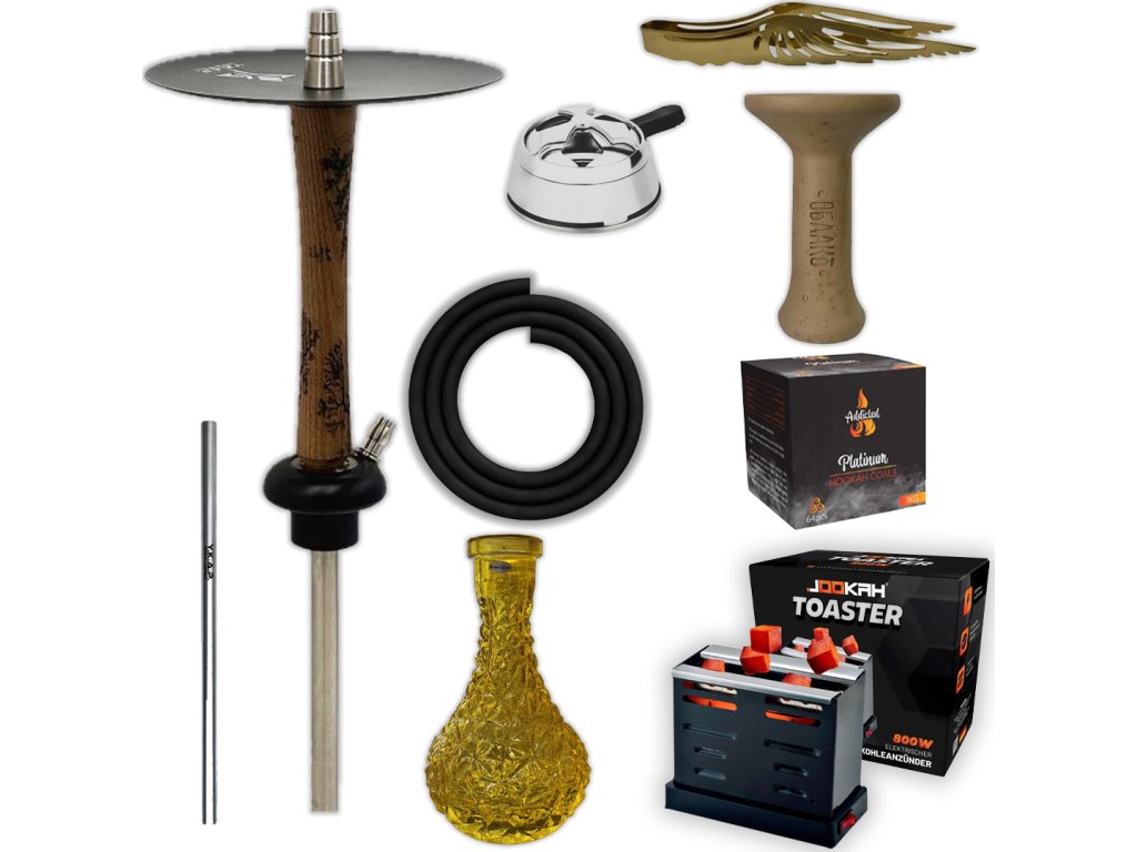Vodní dýmky YKAP jsou vyráběny převážně z odolných kovových materiálů, zejména nerezové oceli, což zajišťuje dlouhou životnost, pevnou konstrukci a snadnou údržbu. Sortiment doplňuje příslušenství jako náustky, konektory, ventily nebo další technické komponenty, které umožňují přizpůsobení sestavy podle individuálních preferencí.