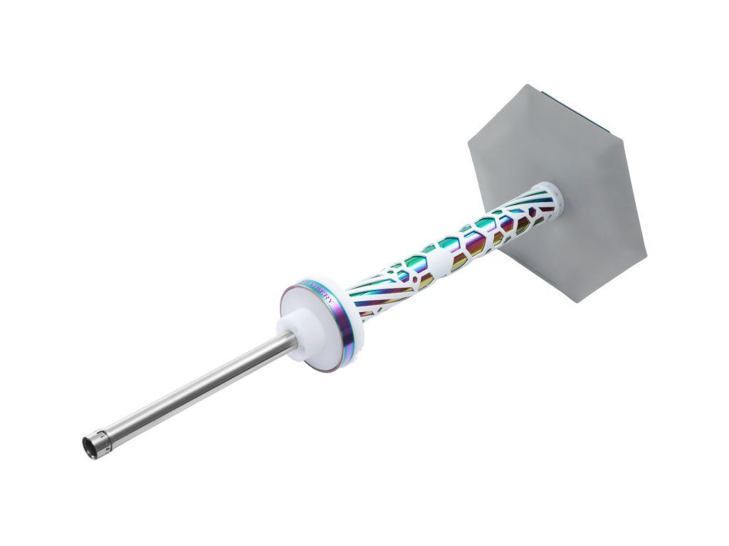 Z hlediska parametrů je to přesně ten typ dýmky, který sedne většině zákazníků: výška 53,5 cm působí stabilně na stole, ale stále je praktická i na běžné přenášení. Uvnitř má vnitřní průměr těla 13 mm, takže tah je plynulý a vyvážený – bez zbytečného „přidušení“ i při delších sessions. Celková hmotnost je 850 g a materiálové provedení nerezová ocel + POM (potravinářský plast) znamená odolnost, snadnou údržbu a čistší používání v každodenní praxi.